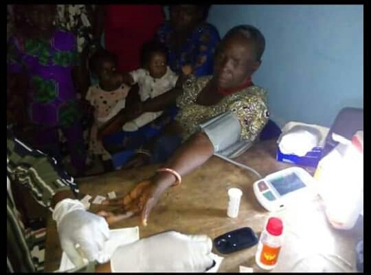 – free medical testing and provision of free drugs on malaria, typhoid, BP in Abuja June 2019. 309 people attended to.